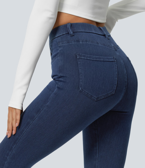 μαγικό ψηλόμεσο crossover πολλαπλές τσέπες ελαστικό πλεκτό τζιν fleece casual 7/8 κολάν γυναίκες Halara 4TH821345 είδη ένδυσης ζοφερό μαύρο τζιν